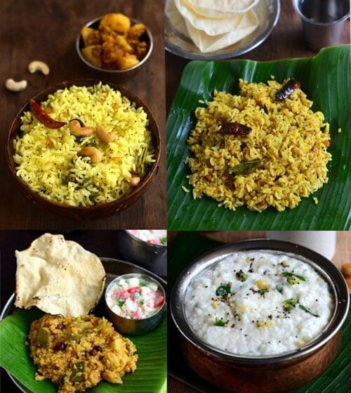 Two flavorful South Indian rice dishes of the day—handpicked from our rotating menu of tamarind, lemon, tomato, or curd rice